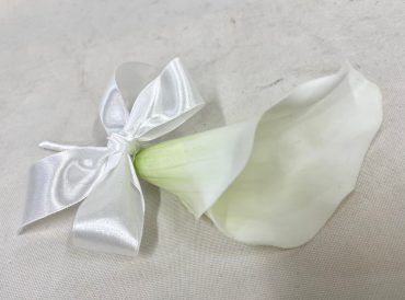造花のカラーのクラッチブーケ、ブートニアをご用意しました。
