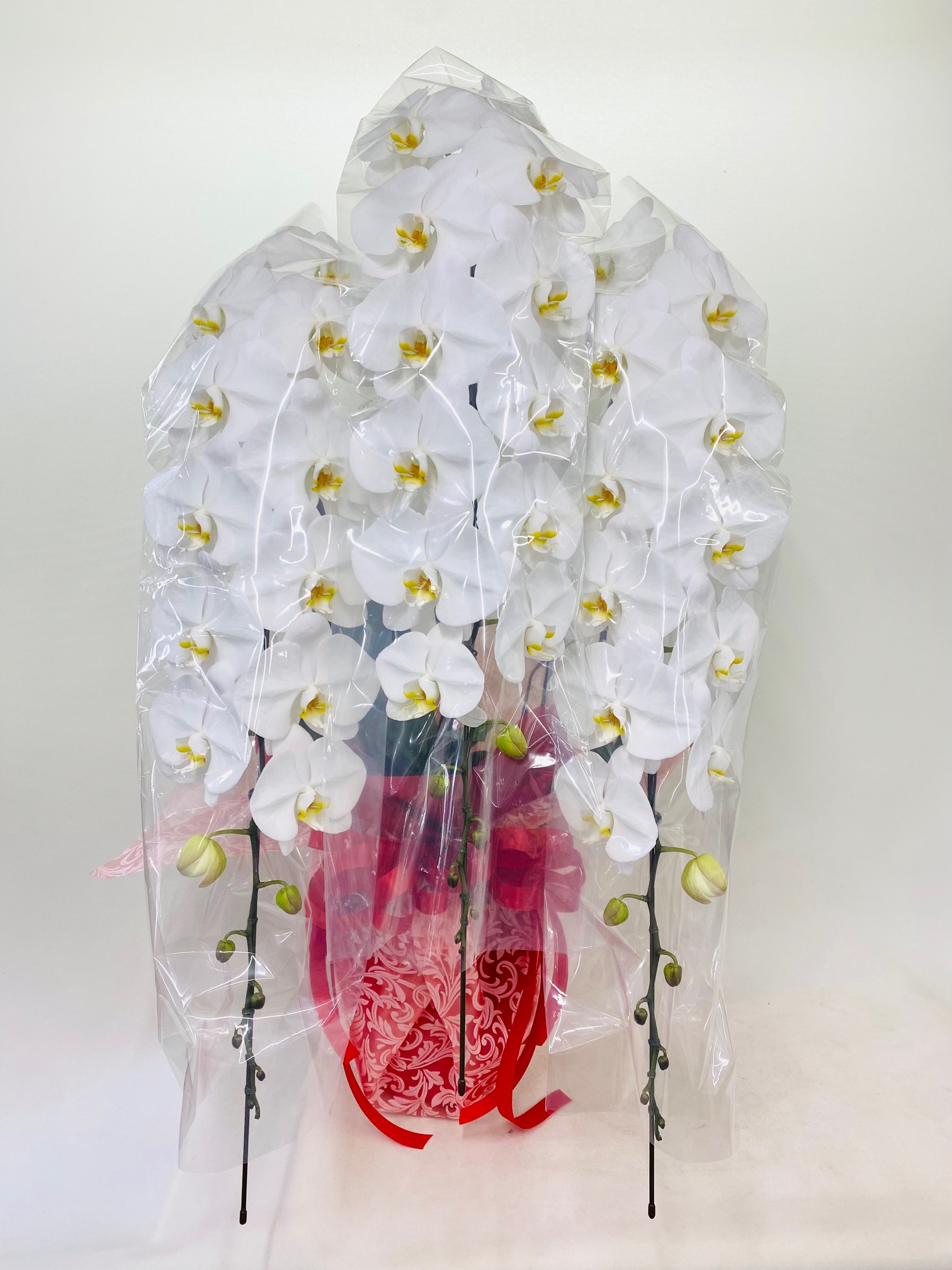 サイズも大きい白の豪華な3本立ち胡蝶蘭。